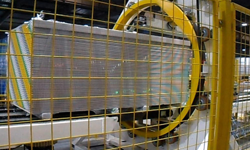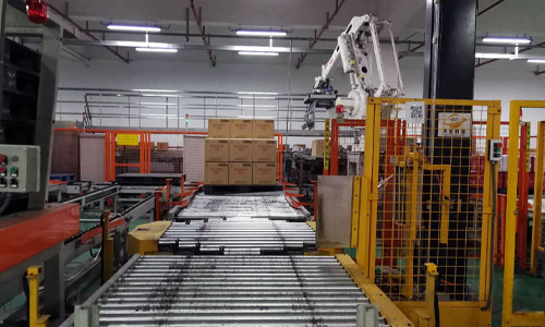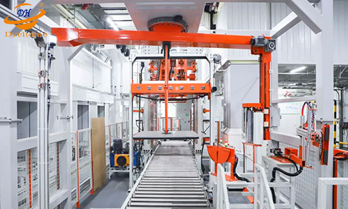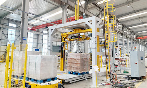大宏佳森(sēn)為其(qí)設計了石膏板(bǎn)包裝和運輸係統,由91视频官网(men)的經銷商銷售給其工廠使用。該生產線采用模塊化設計,配有托盤加腿機,可為貨物添加(jiā)托盤腿,節省材料,效率高。托盤腿存儲(chǔ)機,可自動推送托盤腿,根據貨物尺寸提前放(fàng)置適量的(de)托盤腿。獨特的四邊包裹設計(jì),可附加旋轉包裹器包裹六邊,最大限(xiàn)度地防遠(yuǎn)程潮濕,適(shì)用於(yú)不同(tóng)的板材生(shēng)產線,工人可以使用叉車從卸料站卸下包(bāo)裝產品,卸料站可設計為升降平台式。該係(xì)統的亮點(diǎn)是全自動(dòng)...