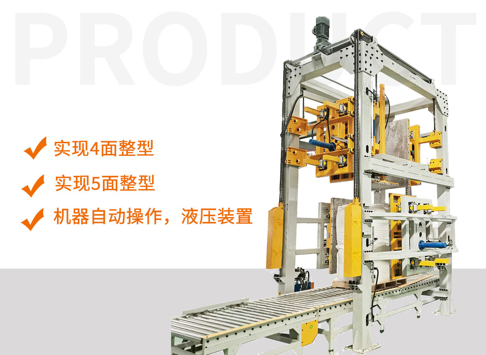 大宏佳森整形機DZ1800,實現貨物在托盤上五麵整形,托盤自動進入整形機內,經(jīng)光電定位,整形機(jī)進入(rù)門降下,通過上、前、後、左(zuǒ)、右設置的整形推板,對垛(duǒ)盤進行五麵整形後,輸出門升起,托盤輸出。